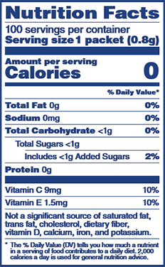 Traditional sweeteners have 0mg of vitamins C and E. Equal PLUS has 9mg of vitamin C and 1.5mg of vitamin E.