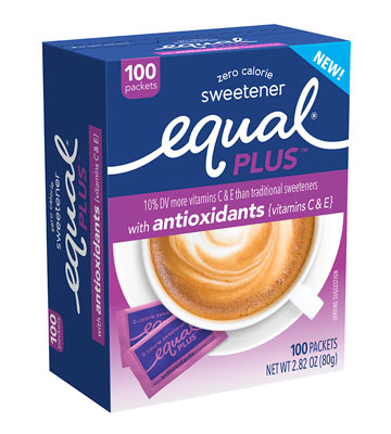 Equal PLUS with antioxidant vitamins C & E has the Equal zero calorie sweetness you love with a good source of vitamins C & E in the convenience of an Equal packet. Equal PLUS with antioxidant vitamins C & E delivers 10% daily value of vitamins C & E, which can help support a healthy immune system. Try it in your favorite coffee, tea, or however you enjoy the zero calorie sweetness of Equal.