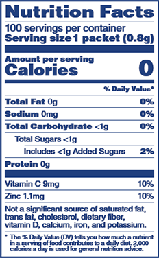 DEXTROSE, MALTODEXTRIN, ASPARTAME, ASCORBIC ACID (VITAMIN C), ACESULFAME POTASSIUM, ZINC SULFATE.